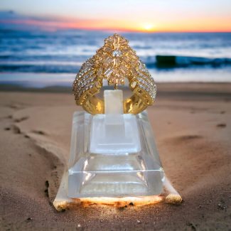 Add a touch of elegance and luxury to your look with our Rose Gold Ring. Adorned with round cut rhinestones, this ring guarantees to sparkle and shine. The perfect accessory for any occasion, this ring will make you feel confident and glamorous.