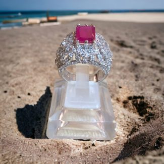 Silver Polsih Ring with Round Brilliant Side Stones